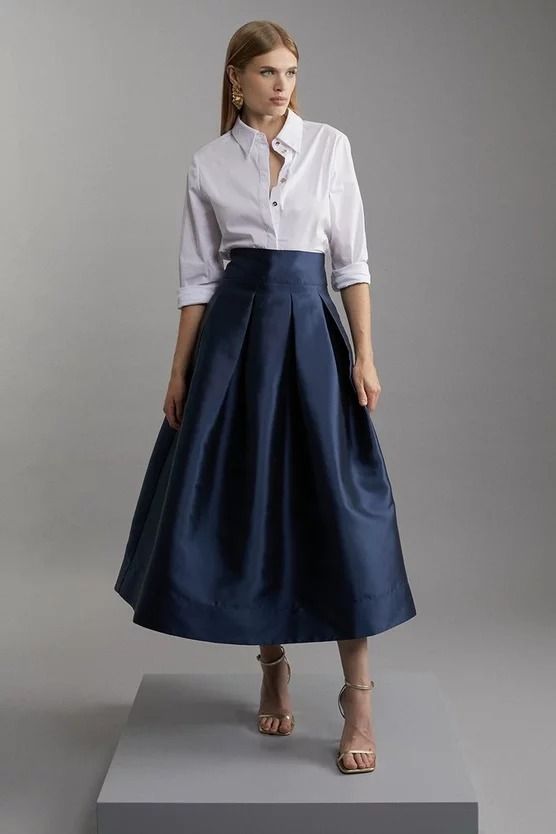 تتميز بقصتها الدائرية التي تمنح الحركة والرقي، وتناسب المناسبات النهارية أو السهرات الرسمية إذا تم تنسيقها مع بلوزة فاخرة وحذاء أنيق.