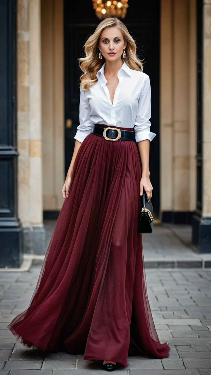 - الأحذية والإكسسوارات: للتنانير الطويلة يمكن اختيار أحذية بكعب عالٍ لإطالة الساقين، أما القصيرة فيمكن اعتمادها مع أحذية رياضية أو صندل منخفض. كما أن الحزام يمكن أن يكون عنصرًا أساسيًا لإبراز الخصر بشكل أكبر، خاصة مع التنانير الطويلة أو الجينز.