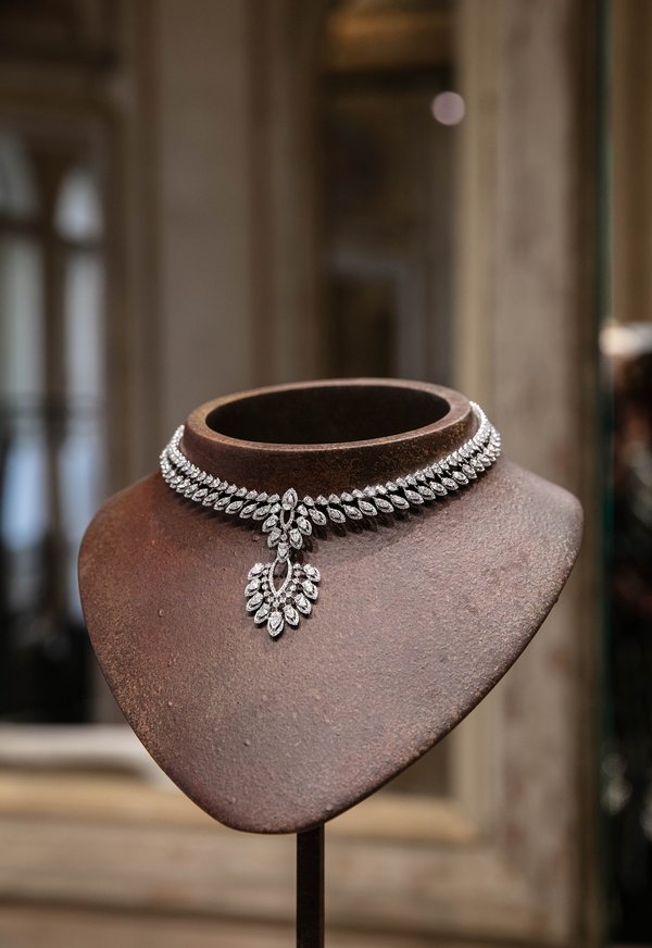وللمرّة الأولى في تاريخها، ابتكرت فاليري ميسيكا قناعاً مرصّعاً بالماس ينبض أنوثة وفخامة. فمن وحي مجموعة Desert Bloom التي عرضتها الدار في بازل وورلد، تجسّد هذه القطعة الاستثنائية مهارة الدار في صياغة المجوهرات، بحيث استخدمت أربعة أنواع مختلفة من ترصيع الأحجار لإبراز أحجار الماس بقصّة الماركيز وحبيبات الماس المستديرة.