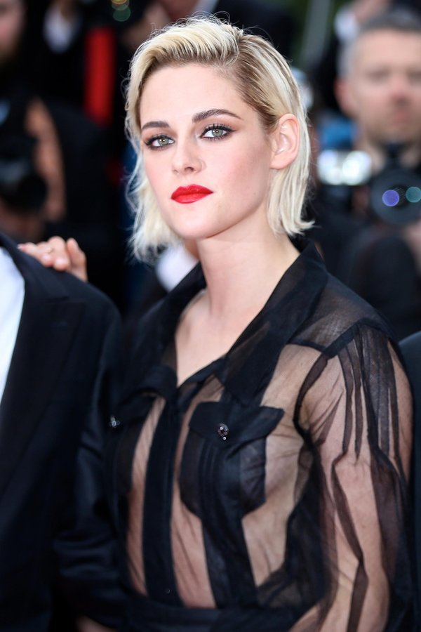 لشعرها الأشقر القصير، اعتمدت ستيوارت الفرق الجانبي. وللمكياج، نسّقت أحمر الشفاه الأحمر الزاهي مع الآيلاينر الأسود الرفيع والرموش الطويلة، ما عكس تبايناً جميلاً وملفتاً.