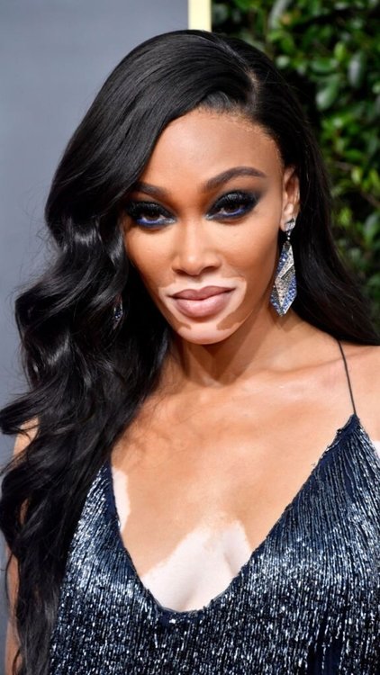 يمكن وصف إطلالة عارضة الأزياء العالمية بالدراماتيكية، إذ لجأت إلى السموكي الأزرق القوي لإبراز جمال عينيها مع نعومة تامّة وطبيعية في مناطق الوجه الأخرى.