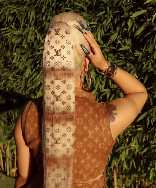 أمّا اليوم، فتتخطّى التوقّعات جميعها لتظهر بشعر مستعار تظهر عليه طبعة الدار العالمية الشهيرة لويس فويتون Louis Vuitton. نعم، فمنذ يومين تقريباً، نشرت Cardi B لمتابعيها على إنستغرام صوراً لها وهي ترتدي تنورة وبلوزة من لويس فويتون وقد نسّقت معهما تسريحة ذيل حصان تُظهر طبعة الدار أيضاً.