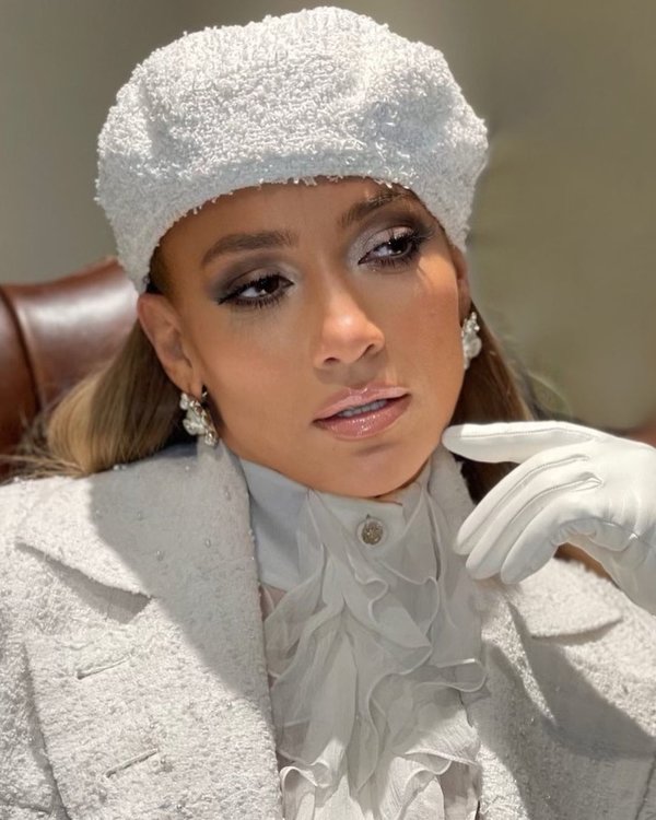 من جهتها، اختارت جنيفر لوبيز إطلالة أزيائها من دار شانيل Chanel العالمية فتألّقت باللون الأبيض من الرأس حتّى أخمص القدمين. وقد تماشى اللون الأبيض هذا تماماً مع سحنتها المسمّرة بشكل واضح مع قليل من الهايلايتر عند أعلى الخدود كما ومع لوك السموكي الناعم بلمسات فضية على عينيها. أمّا بالنسبة إلى تسريحة الشعر، وعلى خلاف ليدي غاغا، سدلت النجمة الشهيرة شعرها ولم تختر رفعه سوى رفعة نصفية.