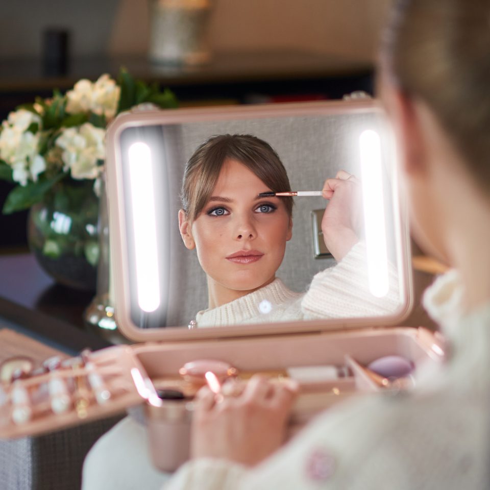 وقد سهّلت علينا المهمّة بالفعل! فنحن لا نحتاج أكثر من مساحة لوضع مستحضراتنا وإضاءة جيدة ومرآة لنهتمّ بلوكاتنا. وتجدر الإشارة إلى أنّ العمل على نظام الإضاءة الحصري في هذا الصندوق استغرق عامين، بخاصّة أنّه يحاكي ظروف الإضاءة النهارية ويضمن رؤية جميع التفاصيل، مع خمس خيارات من الإضاءة المسائية وصولاً إلى الإضاءة الساطعة.