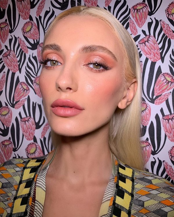 لعرض Alice Temperley، رغبت صوفيا في إحياء رؤية العلامة لخروجات الصيف الإيطالية وأمسيات غروب الشمس. لذلك، ابتكرت لوكاً أثيرياً يتمحور حول السحنة النضرة ذات الجمال الطبيعي مع لمسات وردية. وعلى العينين، لاحظنا البريق الذي يذكّرنا بالماس. أمّا التدرّجات التي لفتت نظرنا في هذه المنطقة من الوجه تحديداً، فهي الوردي اللؤلؤي والبرونزي المائل إلى الدرّاقي. وتجدر الإشارة إلى أنّ هذه الألوان ساهمت في فتح العين ومنحها مزيداً من الألق ما تناسب تماماً مع اللوحة الصيفية المرسومة في الإطلالة بشكل عام. وكيف لا نذكر اللون النيود الطبيعي على الشفتين!