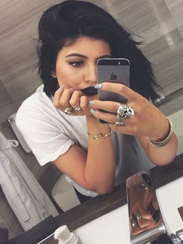 تحب النجمة كايلي جينير التقاط صور الـselfie إذ تقوم بالتقاطها بشكل مستمر وبنشرها على إنستاغرام، وقامت مؤخراً بتطبيق أحمر شفاه أسود داكن على شفاهها والتقطت صورة selfie لنفسها ونشرتها كالعادة على  صفحتها الخاصة على إنستاغرام.