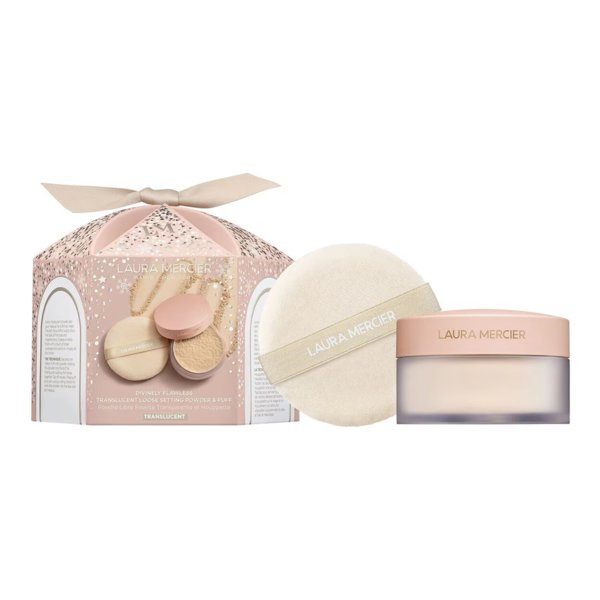 طقم البودرة الأيقونية Divinely Flawless Translucent Loose Setting Powder & Puff من Laura Mercier