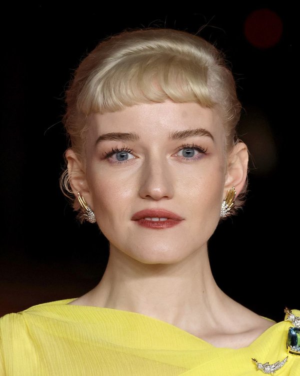 وقبل شهر تقريباً، كانت النجمة جوليا غارنر قد أطلّت بالغرة القصيرة أيضاً، وقد جاء تسريحها بطريقة ريترو وكأنّها ملتفة نحو جانب واحد من الوجه، أي في إطلالة متباينة مع إطلالة زيندايا.
