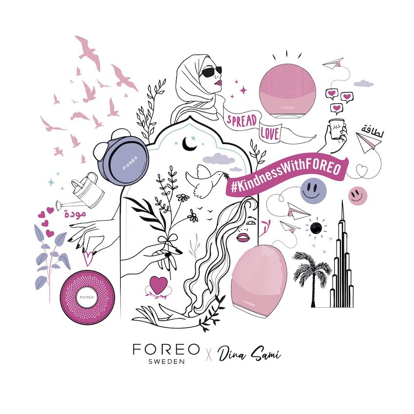 بالإضافة إلى ذلك، تعاونت العلامة التجارية الشهيرة مع الفنّانة الفلسطينية المقيمة في دبي دينا سامي. وقد تولّت هذه الأخيرة من خلال رسوماتها التوصيحية ابتكار الهوية المرئية لحملة فوريو Foreo للأعمال الطيّبة في رمضان. وقد قالت سامي في هذا الإطار: "أردتُ صنع شيء يمكنه أن يكون تَذكرة بصرية لأهمية انتشار الطيبة بين الآخرين، ليس فقط خلال شهر رمضان الكريم، ولكن طوال العام. أحبُّ أنّ فوريو Foreo هي إحدى الماركات التجميلية القليلة التي لا تخشي تخطي الحدود دون التخلي عن رؤيتهم".
