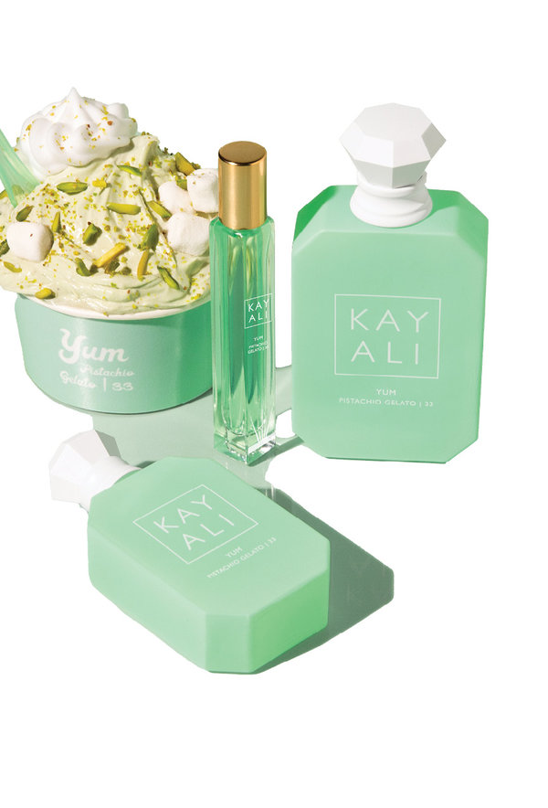 أميل عادةً إلى ابتكار عطور ترتبط بذكرى معيّنة أو مزاج محدّد، وكأنّه الفاصل في كتاب الحياة الذي تعود إليه في كل مرة تتنشّق نفحاته. أمّا عطر Yum Pistachio Gelato تحديداً، فاستوحيته من رحلة قمت بها إلى روما مع شقيقتي Alya في العام 2014، وقد وقعت حينها في حب الجيلاتو بطعم الفستق. أحببت الحلاوة والملمس الكريمي والسعادة التي امتزجت جميعها في هذه الحلوى، وهذا ما دفعني في مشاركتها مع العالم كلّه عبر زجاجه.