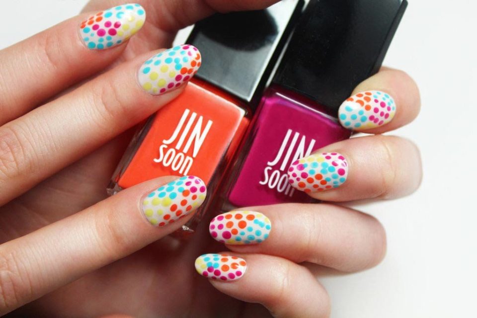 هناك سبب وراء شهرة تصاميم “البولكا-دوت” التي امتدت على قرون، فهذه التصاميم سهلة عند التطبيق ولا تتطلّب سوى أداة للتنقيذ أو عصا رفيعة لخلق شكل أنيق وملوّن، مثل هذا الذي يظهر في الصورة من “جين سون شوي”. تمّ خلق تصميم “البولكا-دوت” هذا على أظافر بيضاء مع ألوان من النيون تتناسب أزيائك الصيفية.