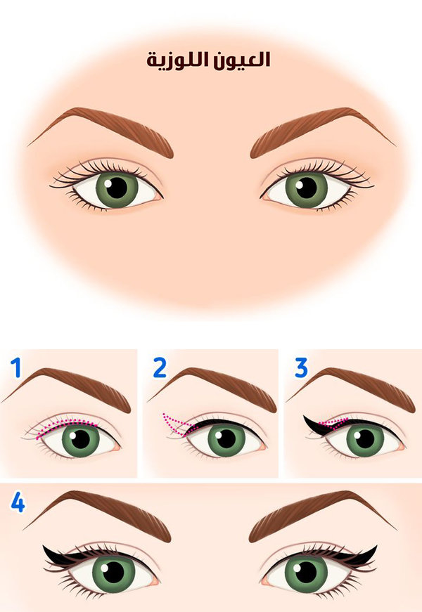 لكل شكل عيون رسمة آيلاينر محددة، وسيساعدك معرفة شكل عيونك في اختيار رسمة الآيلاينر المناسبة لهما ورسم الخطوط المثالية لتعزيز جمال عينيك. إليك بالصور والخطوات رسم الآيلاينر لكل عين حسب شكلها: