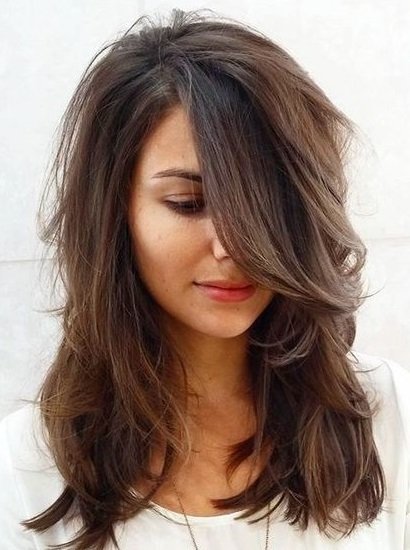 قصة الشعر الطويل مع الخصلات المدرجة والغرة من تقنيات الشعر الجديدة هي أن تخفضي رأسك إلى الأسفل ويقوم مصفِف الشعر بقصِ الأطراف بشكل عشوائي ليزيده كثافة ولاسيما لزيادة التدرجات أيضا على الخصلات ويكون الشعر مميزا .