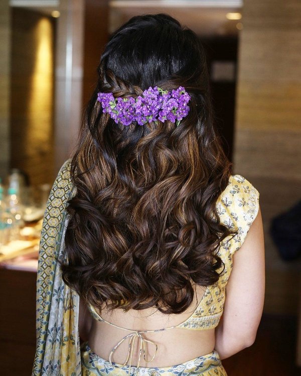 تسريحات شعر مفتوح للسهرات مزينة بالورود