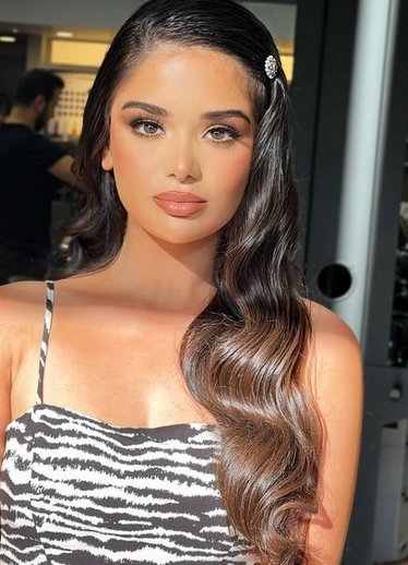 تسريحة شعر مفكوك كيرلي وهذه التسريحة الناعمة تليق بحفل الخطوبة أو لحضور حفل زفاف.
