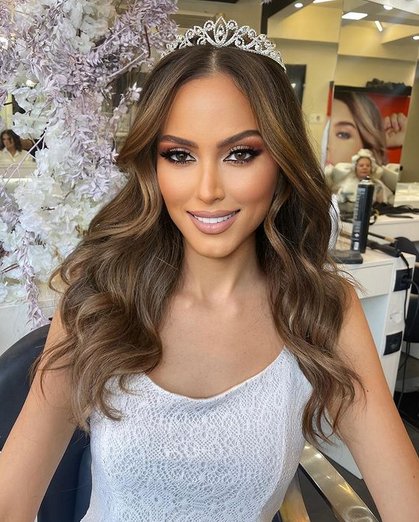 تسريحة شعر مفكوك مميزة وناعمة زينت بالتاج الناعم وهذه التسريحة تصلح للعروس يوم زفافها .