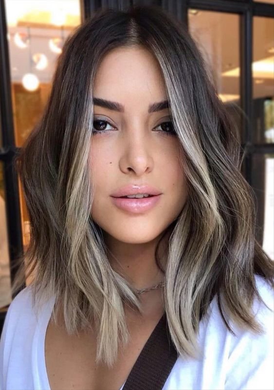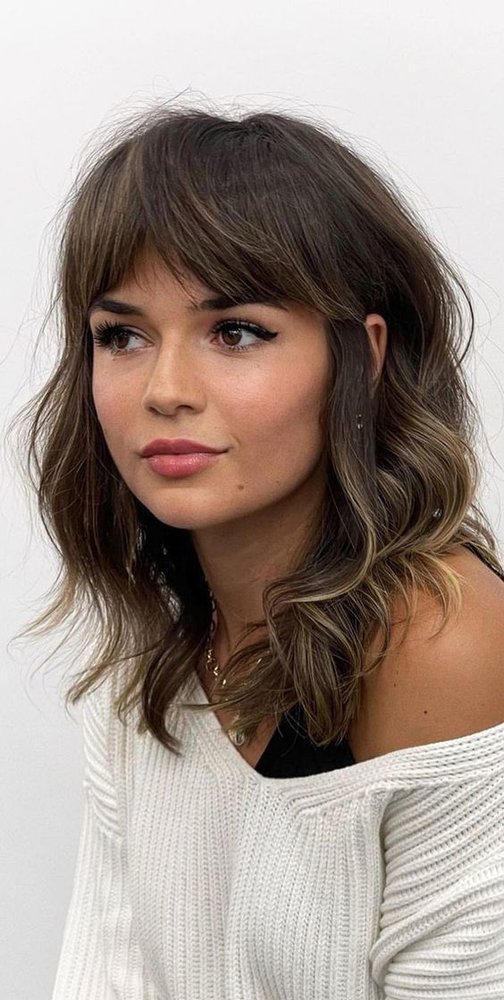 قصات شعر تحت الكتف مع غرة ناعمة تغطي الجبين وتليق خاصة بصاحبات الجبين العريض.