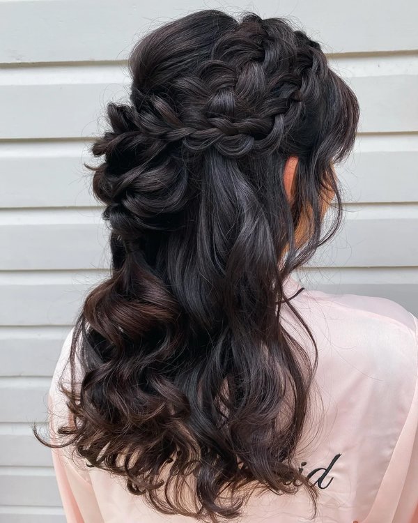 5. ربطة شعر مضفرة نصف مرفوعة ونصف منسدلة
