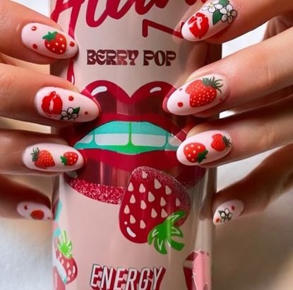من وحي الصيف استخدمي الوان مناكير صيفية منعشة ومميزة نحن اخترنا لك طبعات وروسومات الفراولة لأظافرك.