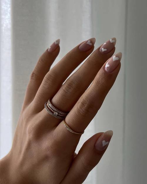 استغني عن الفرنش وألوانه المتعددة واختار الوان مناكير صيفية باللون الأبيض وعلى شكل قلوب.