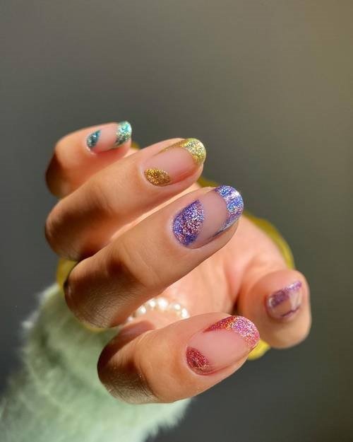 بما أن الألوان البراقة كما ذكرنا سابقاً هي الوان مناكير صيفية رائجة جداً استخدميها لعمل فرنش متقطع جميل وناعم.