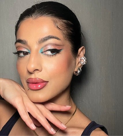 "أحبّ أن أمزج البلاش السائل مع الهايلايتر السائل للحصول على إشراقة طبيعية رائعة ولمسات لونية جميلة في منطقة الخدود. وأستخدم هذه التقنية منذ سنوات طويلة، ويسعدني أنّها رائجة في أيامنا حالياً."
