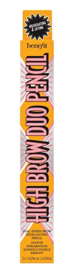 وتقدّم Benefit Cosmetics مستحضر High Brow Duo Pencil الخاص بتحديد الحواجب ورفعها ومنحها مظهراً أكثر إشراقاً. ويتميّز القلم بقوام كريمي سهل المزج وغير لامع. ويتضمّن القلم ثلاث مجموعات لونية لإضفاء درجات ألوان بشرة فاتحة ومتوسطة وعميقة.