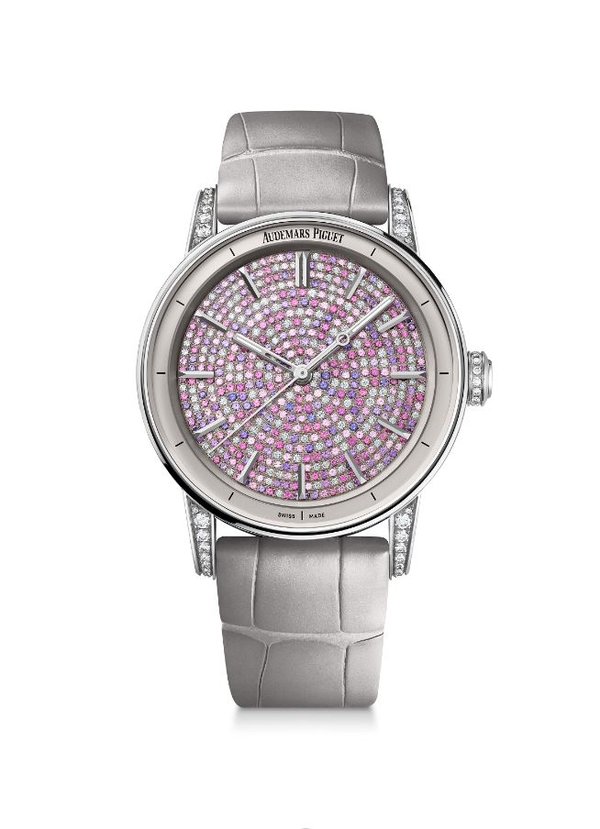 رحبت "كود 11.59 باي أوديمار بيغه" بطرازَين قياس 38 ملم حيث رصّع هيكل وميناءها بالأحجار الكريمة بحيث تتوفر إما بالذهب الأبيض أو الوردي عيار 18 قيراط.