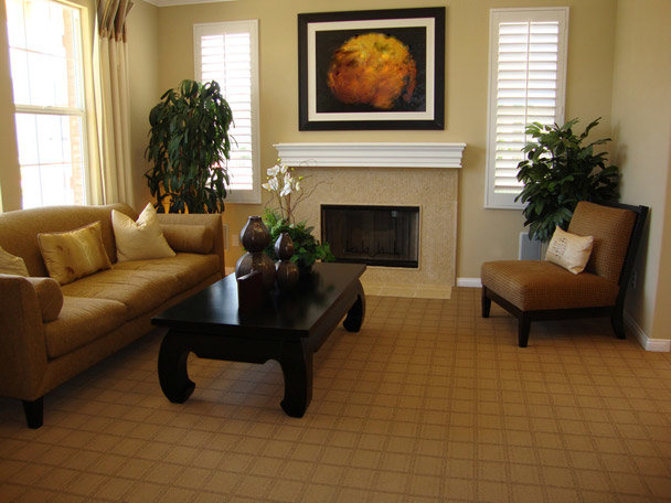 3 أضيفي إلى غرفتك سجادة بلون دافئ مثل البنّي أو الأحمر الداكن على أن توزعي في أرجء الغرفة وحدات إضاءة ذات طابع عصري.