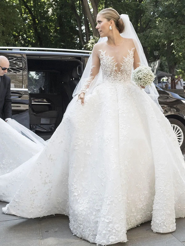 تمت خياطة فستان زفافها من 500 ألف حبة كريستال من قبل المصمم Michael Cinco، بسعر 1 مليون دولار.