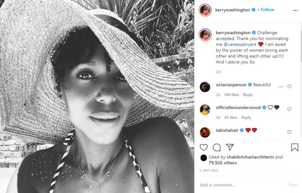 "على سبيل المثال، رأينا كيري واشنطن وسيارا وجينيفر أنيستون وغيرهنّ ضمن النجمات اللواتي شاركن صورهن وقد علقت كيري على صورتها بالأبيض والأسود: "إنني مذهولة من قوة النساء اللواتي يحبن بعضهن البعض ويرفعن بعضهن البعض!