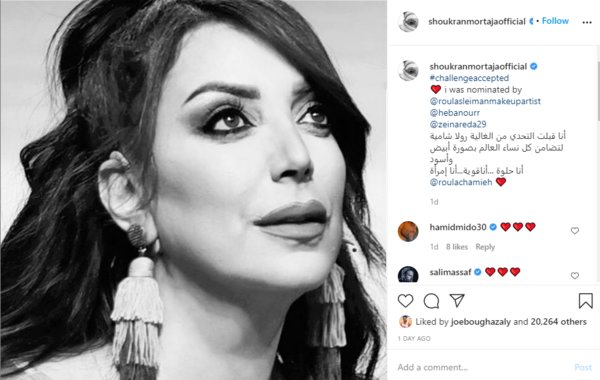 في المقابل، انضمت بعض النجمات العربيات إلى هذا التحدي ومن بينهنّ خبيرة المكياج هلا عجم على سبيل المثال والممثلة رولا شامية والممثلة شكران مرتجى التي قبلت التحدي بعدما رشحتها رولا شامية، وشاركت شكران بصورة علقت عليها: "أنا قبلت التحدي من الغالية رولا شامية لتضامن كل نساء العالم بصورة أبيض وأسود.. أنا حلوة، أنا قوية وأنا امرأة". وتحدت شكران زينة وهبة نور.