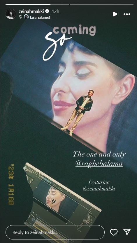 وعلى صفحتها الرسمية على انستغرام وضمن خاصية الستوري، شاركت زينة صورةً تظهر فيها في كواليس هذا العمل الذي سيجمعها مع المغني اللبناني راغب علامة.