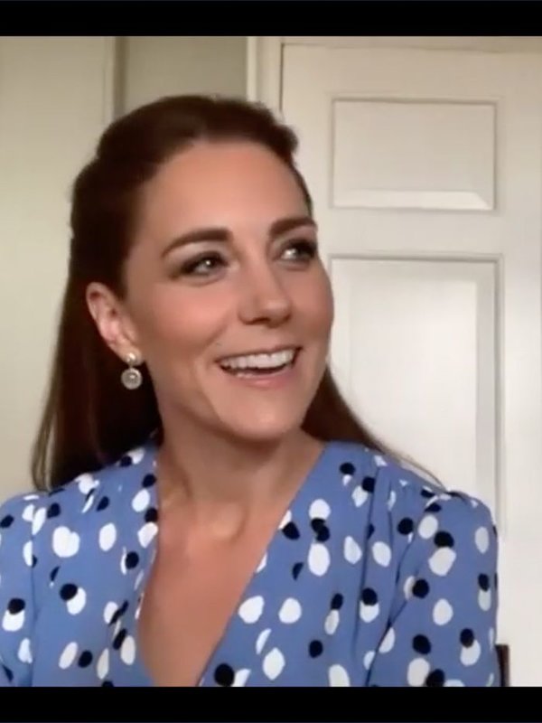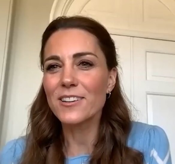 وأطلت عبر تطبيق Zoom وهي ترتدي قميصاً أبيض اللون مزيناً بالتخريمات، نسقته مع أقراط أذن ذهبية وتسريحة شعر بأسلوب الكعكة. وفي هذه الإطلالة أعادتنا كيت إلى العام 2019، وتحديداً خلال زيارتها لمعرض تشيلسي للأزهار.