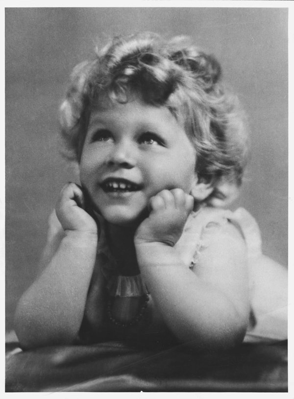 وجه مبتسم وملامح ملائكية هي الملكة إليزابيث وهي صغيرة وبعمر العامين.