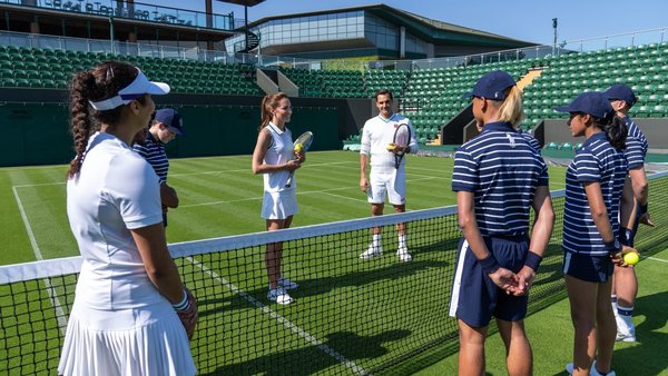 وبعد الإنتهاء، جالت كيت لترى التدريبات التي يفعلونها المراهقين الشباب والبنات في ويمبلدون والذين يشاركون في هذا البرنامج الذي يسعى الى التقاط الكرات في المباريات العالمية.