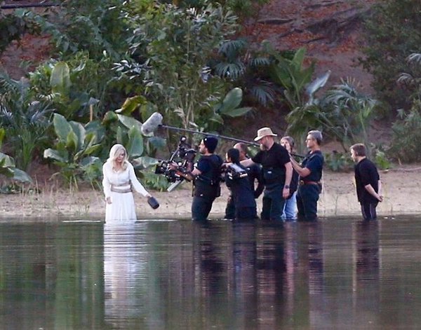 وفي هذا السياق، التقطت عدسات الباباراتزي سلسلة صور للنجمة العالمية من موقع التصوير الذي اتخذ مكانه في بحيرة فرينشام ليتل بوند.