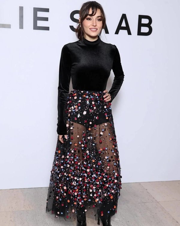 نكمل مع  عرض إيلي صعب حيث حضرت الممثلتان التركيتان توبا بويوكستون التي تألقت ببدلة سوداء وهاندا ارتشيل مع التنورة الشفافة التي أثارت ضجة كبيرة على مواقع التواصل الإجتماعي.