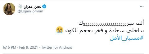 لجين عمران كشفت عن سعادتها، فغردت "ألف مبررررررررررررررررررررروك، بداخلي سعادة و فخر بحجم الكون". وكتبت على إنستغرام "