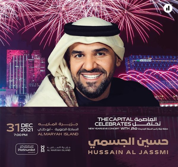 "نستقبل العام الجديد 2022 بكل حب وتفاؤل لأيام أجمل ونجاحات أكبر ..مع أحبابنا ومن عاصمتنا الغالية ابوظبي" بهذه الكلمات أعلن حسين الجسمي عن حفلته في جزيرة المارية بإمارة أبو ظبي.