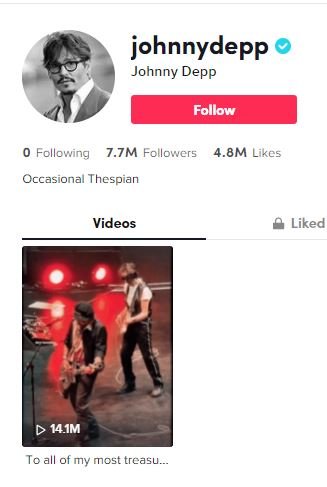 اللافت في الأمر أنه بأقل من يوم واحد فقط وصل عدد متابعي جوني ديب على تيك توك أكثر من 7 ملايين متابع في حين حقق الفيديو أكثر من 14 مليون مشاهد في رقم خيالي جداً!
