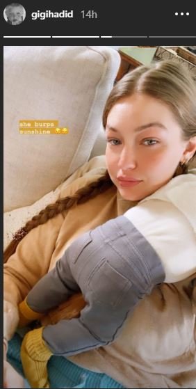 حتى الساعة، لم تكشف جيجي عن إسم طفلتها التي تبلغ من العمر 6 أسابيع ولا حتى عن ملامح وجهها. فيوم أمس، شاركت جيجي متابعيها عبر إنستغرام عبر خاصية الستوريز بصورة سيلفي تجمعها مع ابنتها.