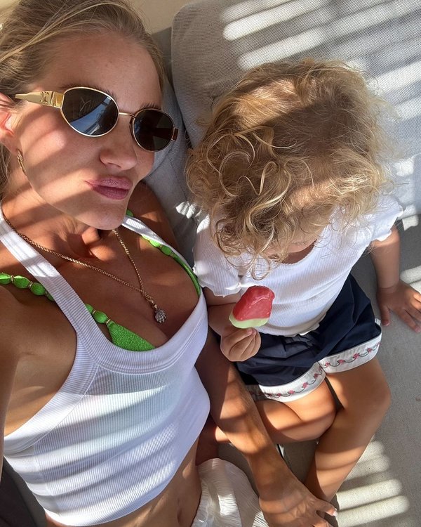 في منشورات سابقة من إجازة العائلة في اليونان، أظهرت المزيد من اللقطات لطفليها يستمتعان بوقتهما في أنتيباروس. في إحدى اللقطات، يمكن رؤية جاك وهو يعجب بعرض الأسماك وإيزابيلا تستمتع بمثلجات حمراء وتسبح في البركة.