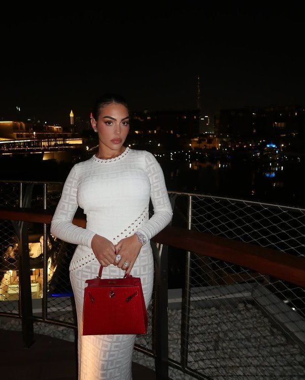 استقبلت جورجينا العام الجديد مرتديةً فستانًا باللون الأبيض وحقيبة Hermès باللون الاحمر. لم يأتِ هذا الإختيار عن عبث، بل إنه استراتيجية جورجينا لجلب طاقة الثراء.