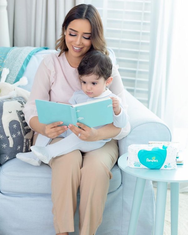 وظهرت بلقيس في الصورة وهي تضع الطفل في حضنها وتقرأ له قصّة من أحد الكتب. وعلقت عليها قائلة: "صار لنا أسبوع تقريباً بدون تلفاز أو آيباد نهائياً في البيت لبيبي تركي. فقط نقرأ ونلعب كثيراً. سؤال للأمهات: أي نوع كتب تشترونها للاطفال بعمر سنة ونصف او سنتين وتحسونها ممتعة لهم؟".