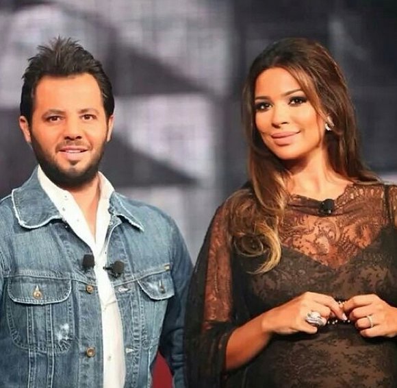 إطلالة تلفزيونية للنجمة نادين نجيم خلال حملها بطفلها الثاني "جيوفاني" في العام 2014 .
