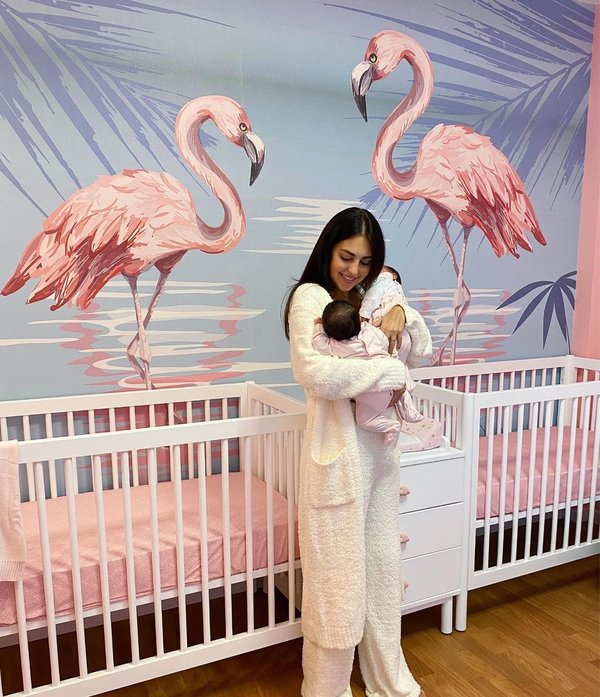 بعد مرور أكثر من شهر، ها هي فاليري تنشر صورة جديدة وهي تحتضن توأمها في غرفة تومهما. وأرفقت فاليري أبو شقرا الصورة بتعليق "اليدان ممتلئتان، والقلب أكثر إكتمالاً".