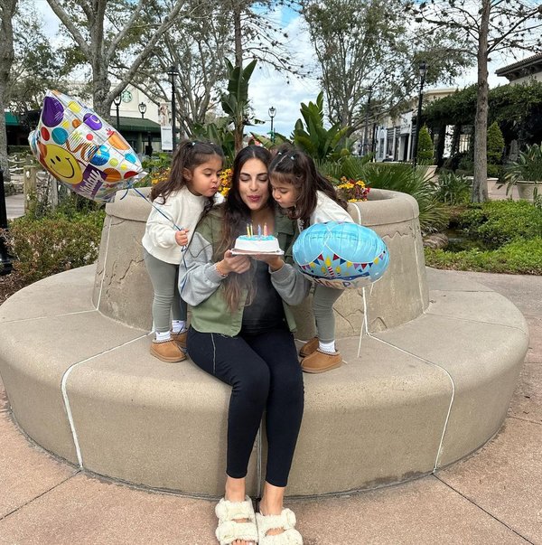 احتفلت الممثلة اللبنانية وملكة الجمال السابقة فاليري ابو شقرا بعيد ميلادها وسط تواجد ابنتيها التوأم واللتان حملتا كل واحدة منهما بالونًا يتمنيان من خلاله لفاليري عيدَ ميلادٍ سعيد.