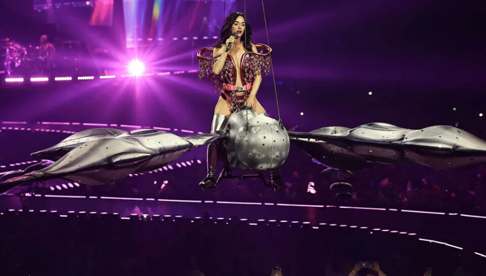 في التفاصيل، وأثناء تأدية كاتي بيري لأغنية Roar فوق هيكل فراشة عملاقة، حصل ما لم يكن بالحسبان! فبلحظة خاطفة ومرعبة سقطت الدعامة فجأة من ارتفاع عدة أقدام فوق الجمهور، قبل أن تستقر ما اضطر كاتي أن تتوقفعن الغناء لفترة قصيرة لتعود وتغني.