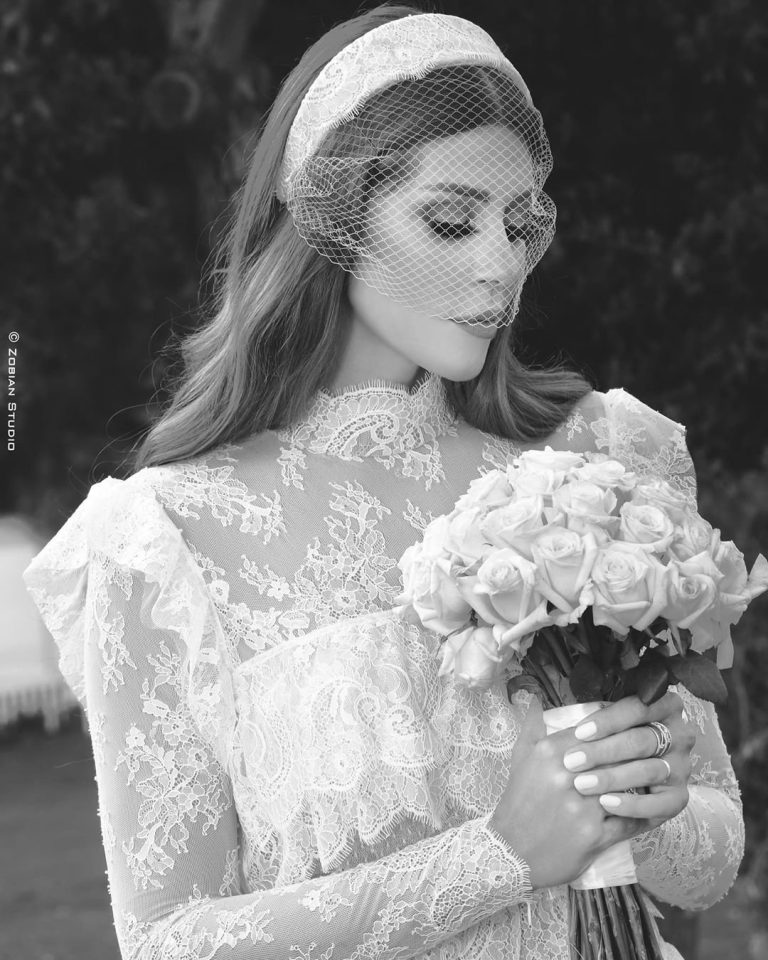 أما في ما خص إطلالتها، فبحسب ما يتم تداولها اختارت فستانها من Mariane Bechara، وقد تميز بياقته العالية، محاك من الدانتيل و مزيّن بالكشاكش، نسّقته مع أكسسوار مميّز للشعر مع شبكة تغطّي نصف وجهها.